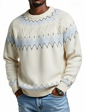 男性用 ニット プルオーバーセーター ニットセーター リブ ニット レギュラートップス ニット 幾何学模様 クルーネック ファッション ストリートファッション カジュアル デイリーウェア 衣類 秋 冬 ホワイト S M L