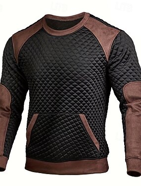 男性用 スウェットシャツ ワッフルスウェットシャツ プルオーバーフーディースウェットシャツ ブラック クルーネック スタンドカラー 平織り パッチワーク カラーブロック テクスチャード加工 カジュアル 日常 スポーツ ヴィンテージ ストリートファッション スポーツウェア 春 & 秋 秋冬 衣類 パーカー トレーナー