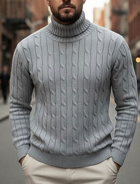 男性用 タートルネックセーター プルオーバーセーター ケーブル ニット レギュラー ニット スリムフィット 平織り タートルネック 現代コンテンポラリー ワーク デイリーウェア 衣類 冬 春 & 秋 ブラック カーキ色 M L XL