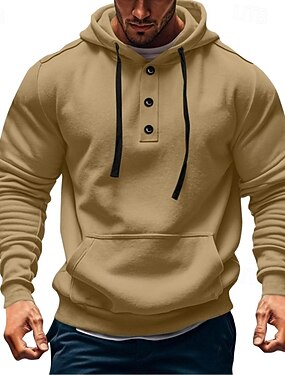 男性用 パーカー プルオーバーフーディースウェットシャツ ボタンアップパーカー ブラック ネイビーブルー ネービーブルー カーキ色 ライトグレー フード付き 平織り パッチワーク カラーブロック スポーツ カジュアル 日常 ストリートファッション クール スポーツウェア 春 & 秋 衣類 パーカー トレーナー