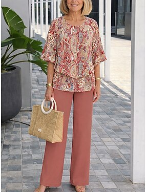 女性用 パンツセット ハーフスリーブ バタフライ ラウンドネック グラフィック ペーズリー エレガント 旅行度假风 カジュアル 日常 ブルー ピンク オレンジ 春夏