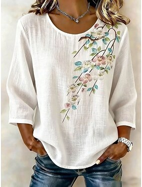 女性用 シャツ フラワー グラフィック ヴィンテージ スタイリッシュ 長袖 クルーネック レギュラートップス カジュアル ブルー ホワイト イエロー ピンク グリーン 夏 春