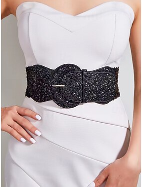 女性用伸縮性フェイクレザースパンコールベルト - 輝くゴールド、クリスマスやホリデーパーティーに最適