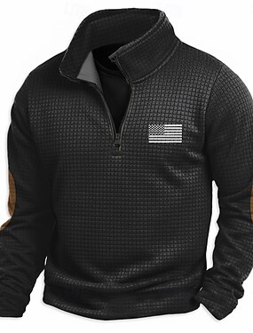 男性用 アメリカの米国旗 ワッフル スウェットシャツ ファッション カジュアル ヴィンテージレトロ スタンド アウトドア 家 贈り物 ブラック ブラウン アーミーグリーン グレー ジッパーを閉める 秋 冬 デザイナー S M L XL XXL XXXL
