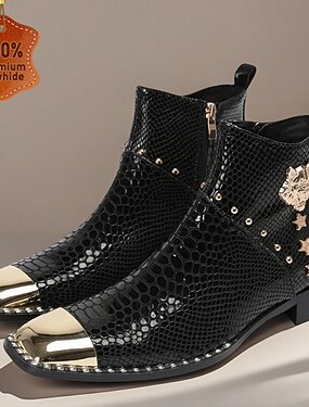 男性用 ブーツ バイカーブーツ レトロ風 蛇の靴 ウォーキング レザー イタリア製フルグレイン牛革 快適 すべり止め ウォーム ブーティー/アンクルブーツ ファスナー ブラック 秋 冬
