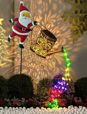クリスマスソーラーサンタクロース 灌漑カンライト ヴィンテージ メタル屋外 ガーデン装飾 ソーラーケトルライト パティオ パスクリスマスギフト