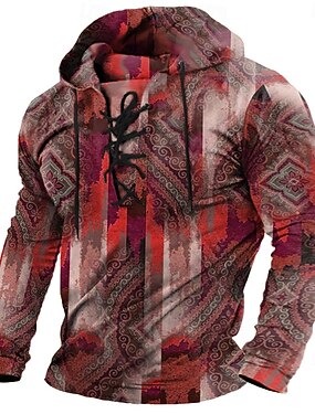 男性用 トライバル 抽象的 バンダナプリント スタイリッシュ エスニック カジュアル パッチワーク ヴィンテージレトロ 長袖 フード付き ストリートウェア イエロー ルビーレッド ブルー ドローストリング 秋 冬 デザイナー S M L XL XXL XXXL