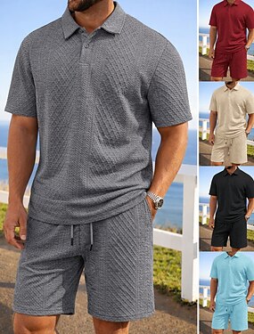 男性用 トラックスーツ ジョギングスーツ ワークアウトスーツ ドローストリング 2個 ソリッド 運動服セット 夏 春 ブラック バーガンディー ジムトレーニング ジョギング ランニング 吸汗性 高通気性 半袖 スポーツ アクティブウェア マイクロエラスティック レギュラー