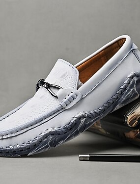 メンズのフェイクレザースリッポンローファー。普段使いにぴったりのカジュアルな履き心地。リラックスした日にぴったり。