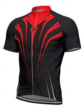 男性用 サイクリングジャージー グラフィック 幾何学模様 半袖 バイク Tシャツ トップス 3つのリアポケット付き UV耐性 速乾性 フロントファスナー 反射性ストリップ スポーツ レッド 衣類