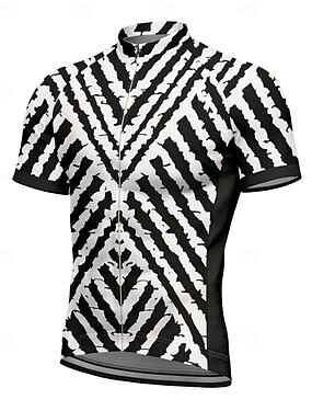 男性用 サイクリングジャージー グラフィック 幾何学模様 幾何学的な 半袖 バイク Tシャツ ジャージー トップス 3つのリアポケット付き UV耐性 速乾性 フロントファスナー 反射性ストリップ スポーツ ブラック ホワイト ブルー 衣類
