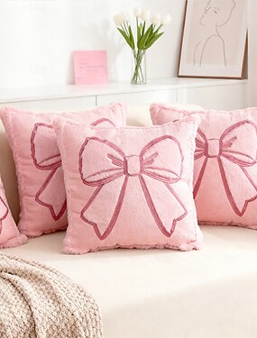 ピンクのリボンの枕カバー、2Dフラットプリントの豪華なスローピロー、ソファ、リビングルームの装飾クッション、バレンタインデーのアクセントピロー、柔らかく快適なベッドやソファの装飾用スロー
