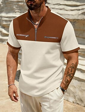 男性用 ワッフルTシャツ Tシャツ 半袖シャツ ティートップ 半袖 スタンド 夏 春 カラーブロック ストリートファッション スタイリッシュ カジュアル ポケット ジッパーを閉める カラーブロック カジュアル 日常 アウトドア ホワイト ブラック ダークネイビー メンズトップTシャツ