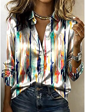 女性用 シャツ グラフィック 幾何学模様 ヴィンテージ スタイリッシュ 近代の 長袖 シャツカラー レギュラートップス 日常 祝日 ブルー ライトグリーン オレンジ 夏 春