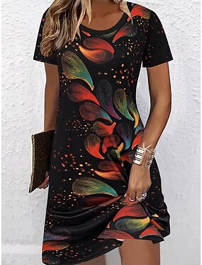 女性用 ミディドレス シフトドレス T シャツドレス サマードレス カジュアル 日常 レギュラー フラワー グラフィック 半袖 クルーネック ブラック ネイビーブルー 夏 春