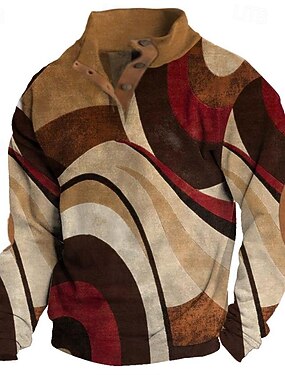 男性用 グラフィック カラーブロック ファッション ストリートファッション カジュアル スタンド アウトドア バケーション お出かけ ブルー スカイブルー ブラウン ボタン プリント 春 & 秋 デザイナー S M L XL 2XL 3XL