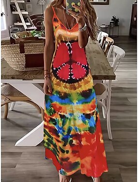 女性用 マキシドレス サンドレス A ラインドレス スリップドレス 旅行度假风 カジュアル ビーチ お出かけ ルーズフィット オンブル’ グラフィック タイダイ ノースリーブ Vネック ルビーレッド ライトパープル 夏 春