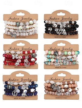 女性用クリスマスボヘミアアクリルビーズブレスレットセット - チャーム付きのマルチカラーデザイン、女性へのホリデーギフトに最適、カジュアルウェアやパーティーに最適なお祭り風でスタイリッシュなアクセサリー