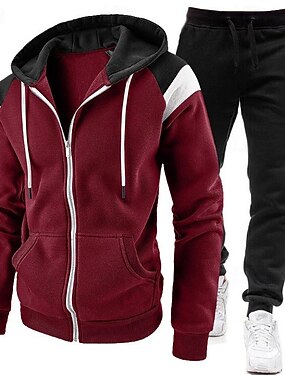 男性用 トラックスーツ 衣装セット パーカーセット パーカー アウトドア 日常 スポーツ ジッパーを閉める ポケット ドローストリング カラーブロック ブラック ホワイト ルビーレッド ポリエステル アクティブウェア ファッション ストリートファッション 春