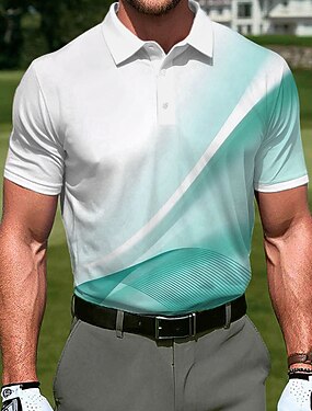 男性用 幾何学的な ゴルフ スポーツポロシャツ 半袖 ポロシャツ 襟付きシャツ カジュアル アスレイジャー 祝日 デイリーウェア 3Dプリント ボタン 高通気性メッシュ 夏 春 ブルー レイクブルー ルビーレッド
