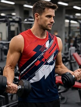 男性用 グラフィック ワークアウトタンクトップ ランニングタンクトップ ジム用タンクトップ 夏 ノースリーブ 速乾性 ソフト 高通気性 ジムトレーニング ランニング ウォーキング ジョギング ブラック ルビーレッド ブルー スポーツウェア アクティブウェア