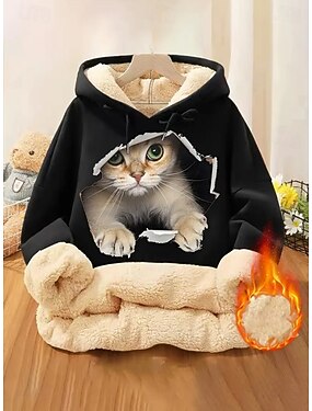 女性用 プルオーバー フーディー スウェットシャツ ポケット プリント 動物 レタード カジュアル 快適 長袖 フード付き レギュラートップス カジュアル ストリート 日常着 ブラック ピンク ルビーレッド グリーン ライト 秋 冬