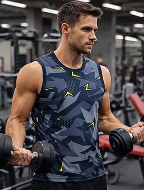 男性用 グラフィック 幾何学模様 ワークアウトタンクトップ ランニングタンクトップ ジム用タンクトップ 夏 ノースリーブ 速乾性 ソフト 高通気性 ジムトレーニング ランニング ウォーキング ジョギング イエロー ルビーレッド ブルー スポーツウェア アクティブウェア