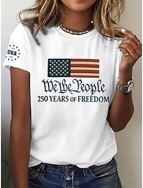 女性用 Tシャツ プリント グラフィック レタード ヴィンテージ ファッション スタイリッシュ 半袖 クルーネック レギュラートップス 日常 週末 ブルー ブラック ホワイト ルビーレッド 夏 春 秋 冬