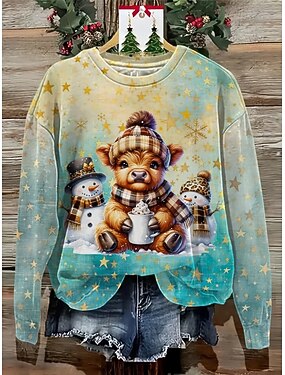 女性用 プルオーバースウェットシャツ パッチワーク グラフィック 動物 牛 カジュアル 長袖 ラウンドネック レギュラートップス カジュアル ストリート 日常着 ブラック ホワイト ルビーレッド パープル グリーン 秋 冬