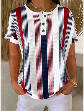 女性用 テクスチャーニットトップス Tシャツ グラフィック 幾何学模様 スタイリッシュ クラシック 半袖 クルーネック レギュラートップス 日常 スポーツ ブルー ルビーレッド 夏 春