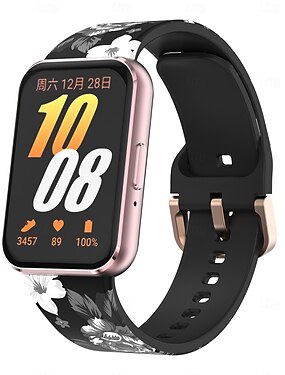 時計バンド のために Samsung Galaxy ギャラクシーフィット3 シリコーン 置換 ストラップ 調整可 スポーツバンド フローラルプリント リストバンド