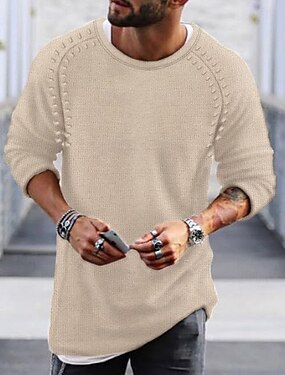 男性用 プルオーバーセーター ワッフル ニット クルーネック 平織り クルーネック ヴィンテージ クール 学校 バケーション 衣類 ラグランスリーブ 春 秋 ダークネイビー カーキ色 S M L