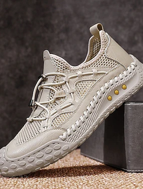 メンズ ベージュ アウトドア スニーカー レースアップ 通気性 軽量 快適 ウォーキングシューズ ハイキング、旅行、キャンプ、トレイルウォーキング、アウトドアアドベンチャー、普段使いのカジュアルスポーツスタイル
