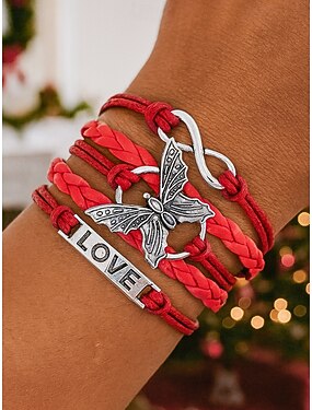 蝶と愛のチャームが付いた女性用クリスマスマルチレイヤーブレスレット。ホリデーパーティーやギフトに最適な、調節可能な編み込みラップジュエリー。