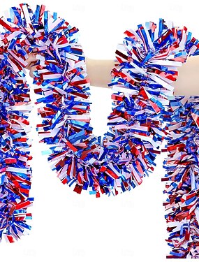 66フィートの愛国的な7月4日デコレーション、赤、白、青のガーランド、メタリックティンセルツイスト7月4日ガーランドデコレーション、7月4日の家、ツリー、車、パレード、メモリアルデー、屋内、屋外パーティー用