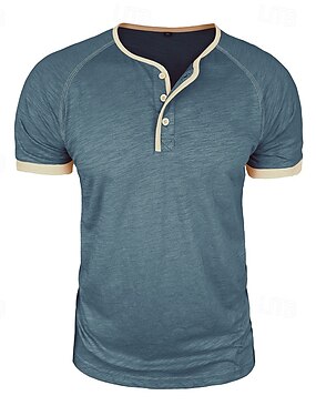 男性用 ヘンリーシャツ コットンシャツ Tシャツ 半袖 純色 平織り ソリッドカラー ファッション デザイナー カジュアル カラーブロック ボタン ヘンリー アウトドア カジュアル 日常 夏 ダークグレー ブラック ブルー ヘンリーTシャツ