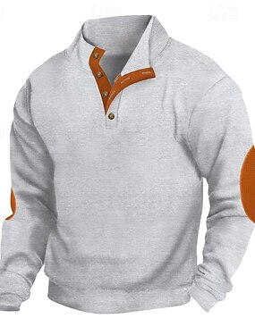 男性用 スウェットシャツ ワッフルスウェットシャツ 路肩に寄せて下さい ボタンアップパーカー ブラック ホワイト ブルー カーキ色 グレー スタンドカラー 平織り パッチワーク スポーツ カジュアル 日常 ストリートファッション クール スポーツウェア 春 & 秋 オールシーズン 衣類 パーカー トレーナー