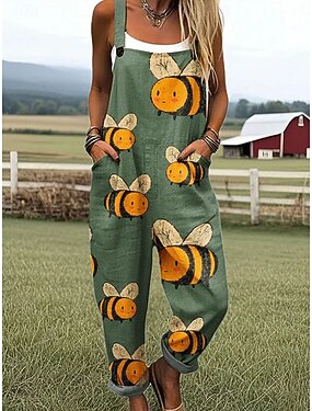 女性用 ロンパース 活発的 グラフィック ノースリーブ ハーレム ボタン バケーション ストリート ルーズフィット ブルー ホワイト イエロー 夏