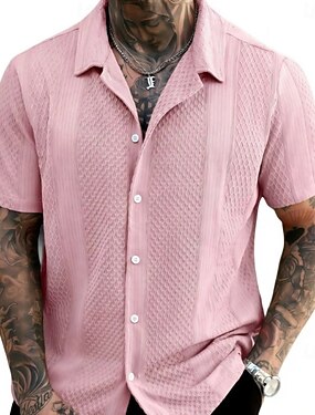 男性用 シャツ カジュアルシャツ ボタンアップシャツ ジャカードシャツ ブラック ホワイト ピンク ネイビーブルー アプリコット 半袖 平織り シャツカラー カジュアル 日常 ボタン 衣類 エレガント ファッション カジュアル