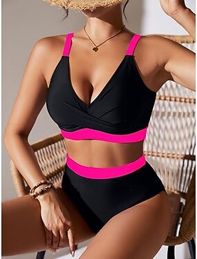 ウィメンズ ビキニ 2ピース 水着 カラーブロック チーキー スリム バックレス バケーション ビーチ ウェア カラーブロック V ネック ノースリーブ 水着