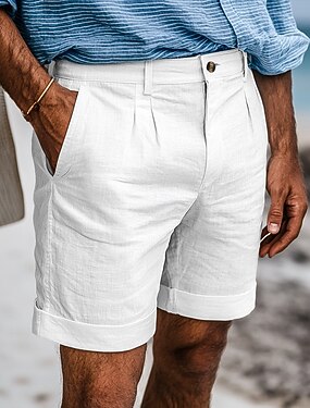 男性用 ショーツ リネンショーツ ドレスショーツ サマーショーツ プリーツショーツ ポケット プリーツ まっすぐな足 平織り 履き心地よい 高通気性 ショート カジュアル 日常 祝日 ファッション デザイナー ブラック ホワイト