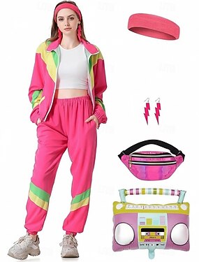 レトリ/ヴィンテージ 1980年代 ヒップホップ セット バッグ 付属品セット アクセサリー付き 長袖 ディスコ 仮装 女性用 カーニバルコスチューム ハロウィーン カーニバル 新年 プライドパレード プライド月間 大人 バッグ 多くのアクセサリー トラックスーツ オールシーズン