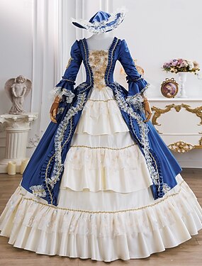 ヴィンテージ ロココ調 ルネッサンス マキシ丈 ドレス 標準 ジュリエット プリンセス 新婦 プリーツ フライト プリンセス ラウンドネック 仮装 女性用 ハロウィーン カーニバル マスカレード 性能 パーティー ハロウィーン 大人 オールシーズン