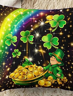聖パトリックの日のアイルランドのシャムロックとレプラコーンのクッションカバー、18x18インチ、グリーンの3Dプリント装飾クッションケース