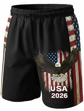 メンズ フラッグ 自由の女神 アメリカンフラッグ ショーツ ミッドウエスト バケーション ファッション ストリートウェア アウトドア カジュアル ホリデー ドローストリング サイドポケット デザイナー衣服 アパレル