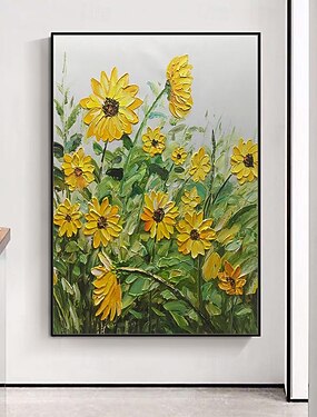 ミンチュラ ハンドメイド ひまわり油絵 キャンバス 壁アート 装飾 モダン 抽象花 家の装飾用 ロール フレームなし 未伸張絵画
