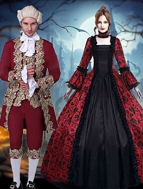 夫婦 プリンセス プリンス バンパイヤ セット ハロウィングループカップルコスチューム ロイヤルスタイル ロココ調 バロック調 成人 男性用 女性用 ハロウィーン カーニバル パーティー 性能 マスカレード 簡単なハロウィンコスチューム ドレスアップ