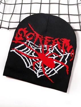 男性用 男女兼用 ビーニー・ハット 冬の帽子 つばなし帽 骷髅头毛线帽 ニット帽 ブラック イエロー アクリル繊維 ジャカード ニット 居心地の良い ハロウィーン デイリーウェア 祭り SPIDER レタード 蜘蛛の巣 ウォーム