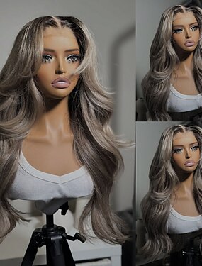 ブラジル産バージンヘア グルーレス 5x5 レース留めウィッグ アッシュブロンド オンブル ハイライト レースフロントウィッグ ナチュラルヘアライン 事前抜毛済み 女性用