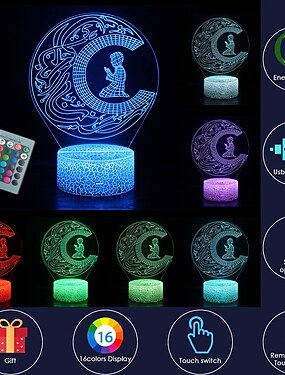 ラマダン イード 3d ムーン ナイト ライト 16 色 変化 リモコン ムバラク イスラム教 教会 ナイトライト 装飾 ムスリム 雰囲気 ランプ 寝室 リビング ルーム イード アルフィトル パーティー ライト 友人 信者 ギフト